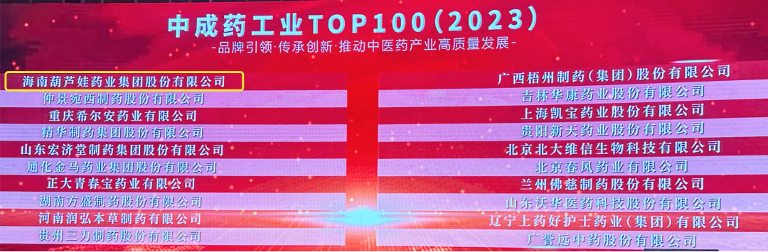 会上,还发布了“2023中成药工业TOP100”榜单,龙八国际药业集团荣耀上榜。